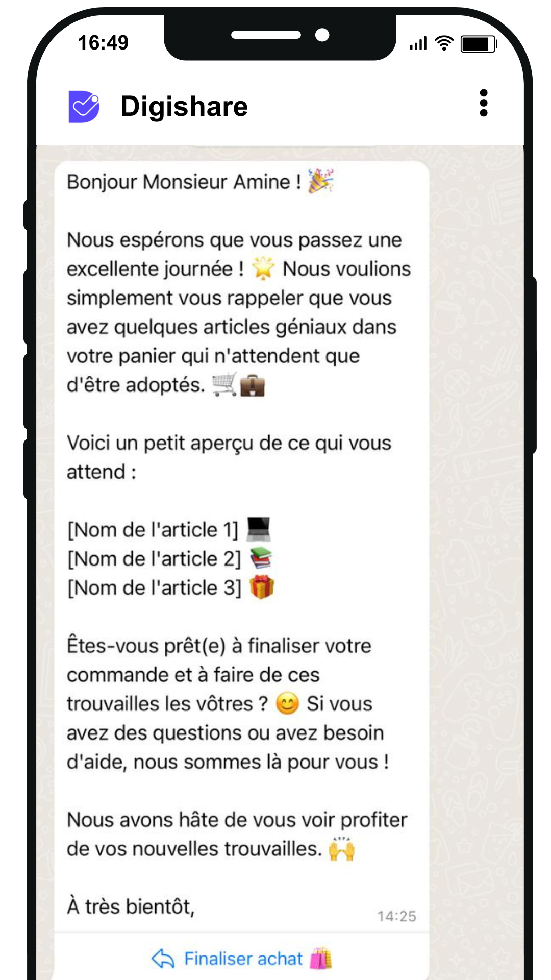 - Intégrez des éléments distinctifs comme des noms, des préférences d'achat ou des historiques de commande.