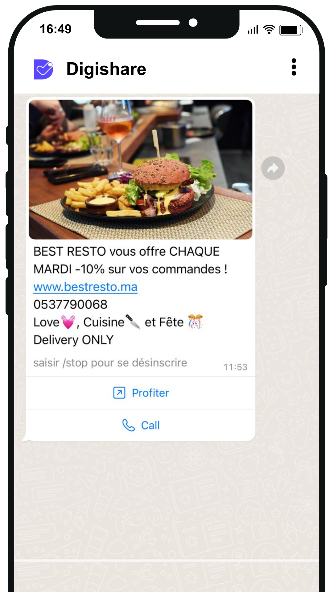 - Broadcastez sans les limitations traditionnelles liées aux listes de diffusion de 256 contacts.
