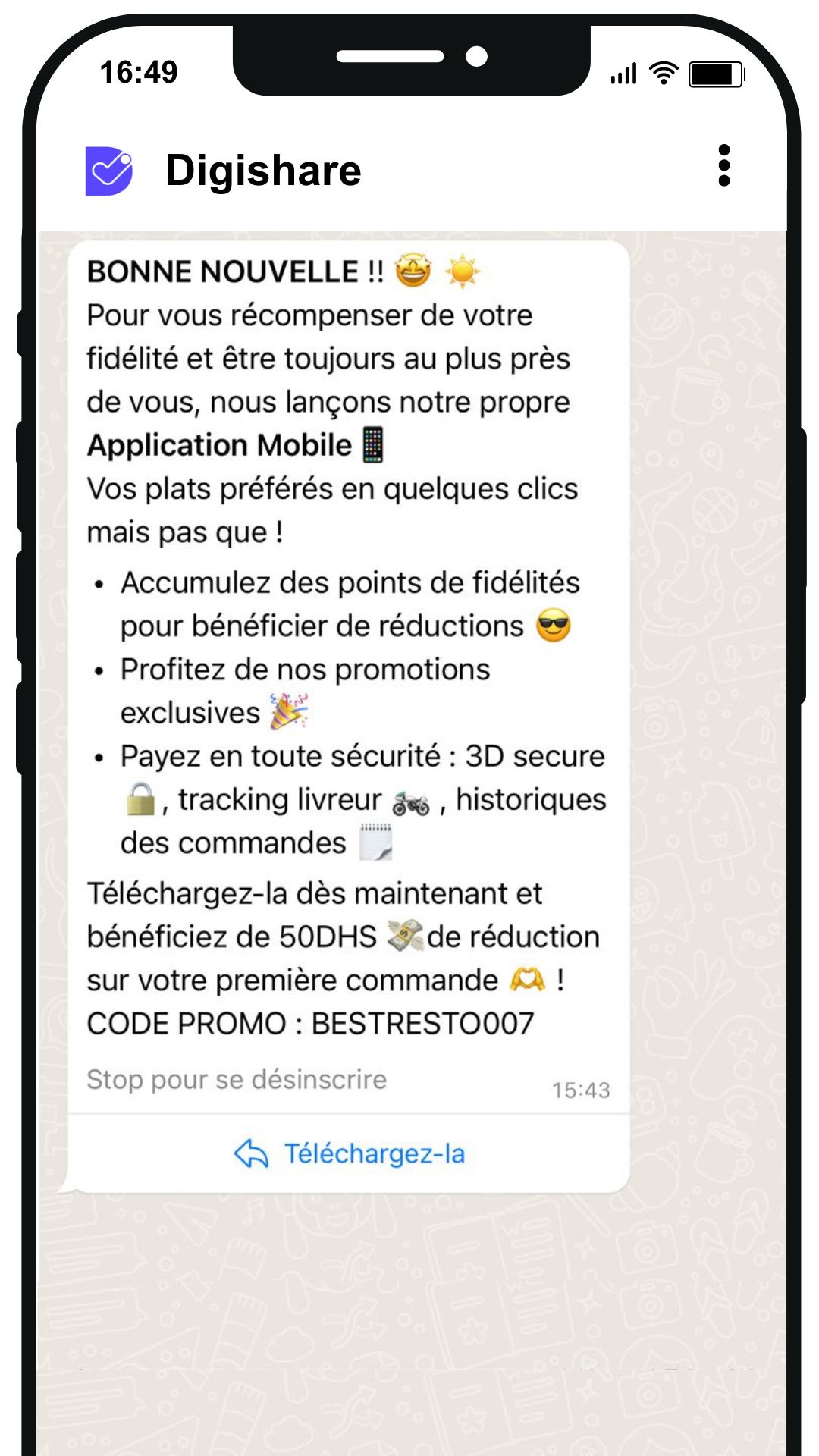 80 % des messages WhatsApp sont ouverts en 3 minutes.