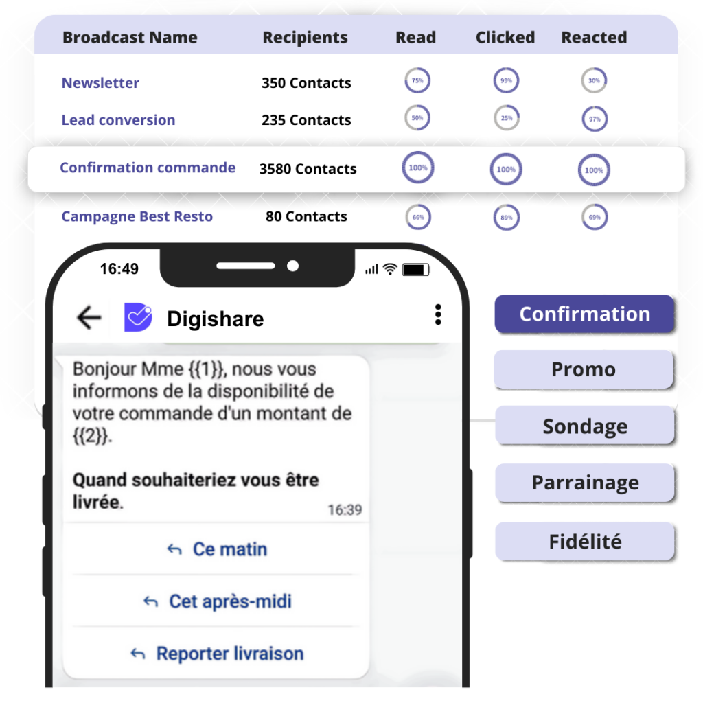 Augmentez vos ventes, automatisez les réponses et réengagez vos contacts en toute simplicité.
