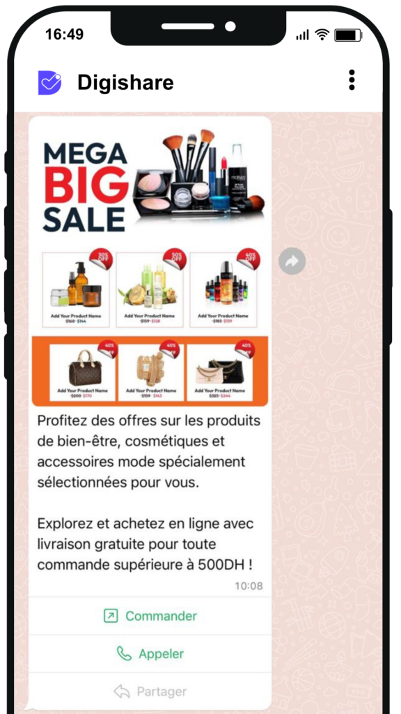 - Orientez vers LiveChat et catalogue WhatsApp.