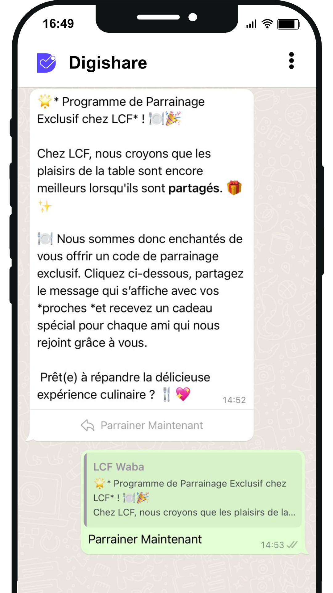 - Les contacts peuvent partager le lien avec leurs propres contacts WhatsApp pour bénéficier d’avantages exclusifs.