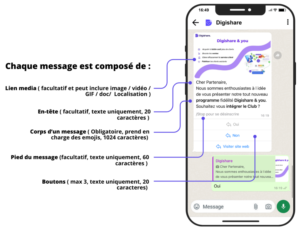 - Le programme "Member Get Members" sur WhatsApp encourage la viralité des offres promotionnelles, il Invite les contacts à partager les offres via le bouton "Partager avec un ami".